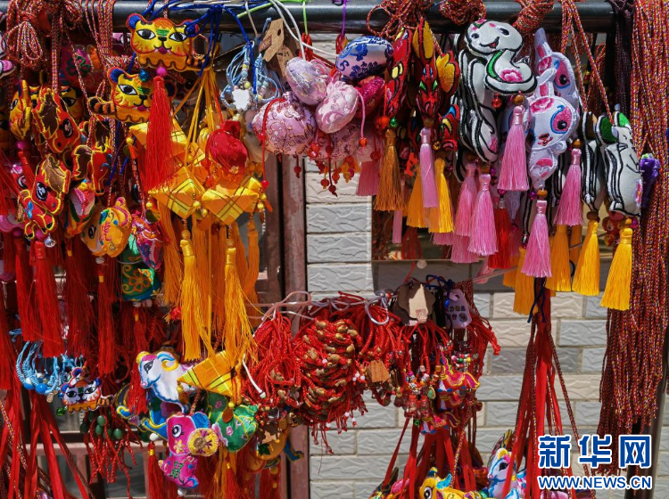 慧绣坊门前,陈列着琳琅满目的香囊。新华社记者 马思嘉 摄