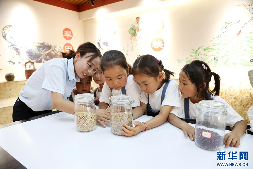 小朋友在农耕文化展示馆了解植物种子相关知识。