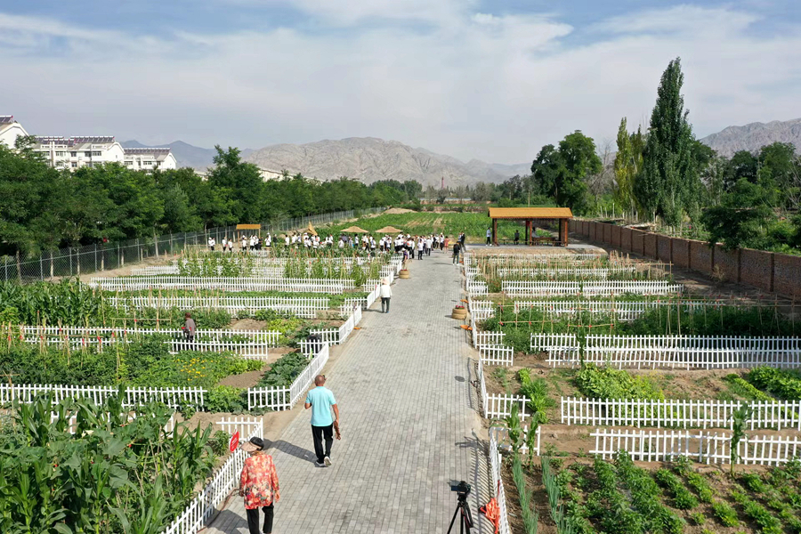 走进宁夏回族自治区石嘴山市大武口区锦林街道安康社区“共享农场”,一畦畦辣椒、茄子、西红柿长势喜人,一旁支架上翠绿的藤蔓间,鲜嫩的黄瓜、豆角挂满枝头。