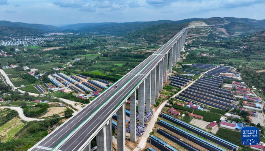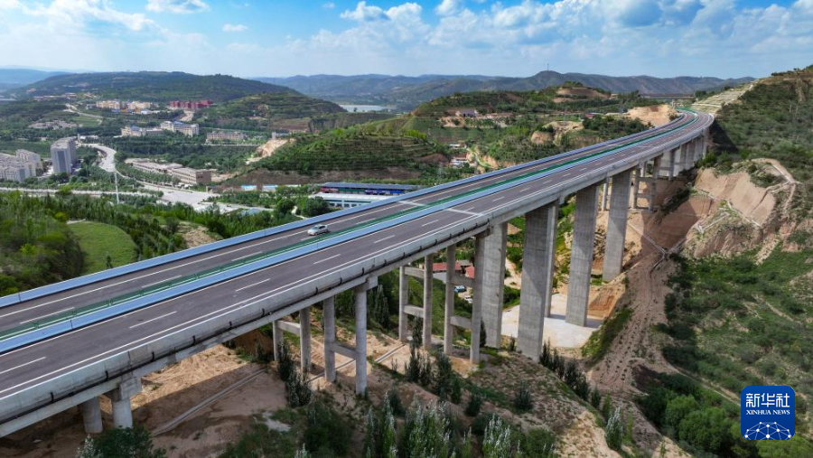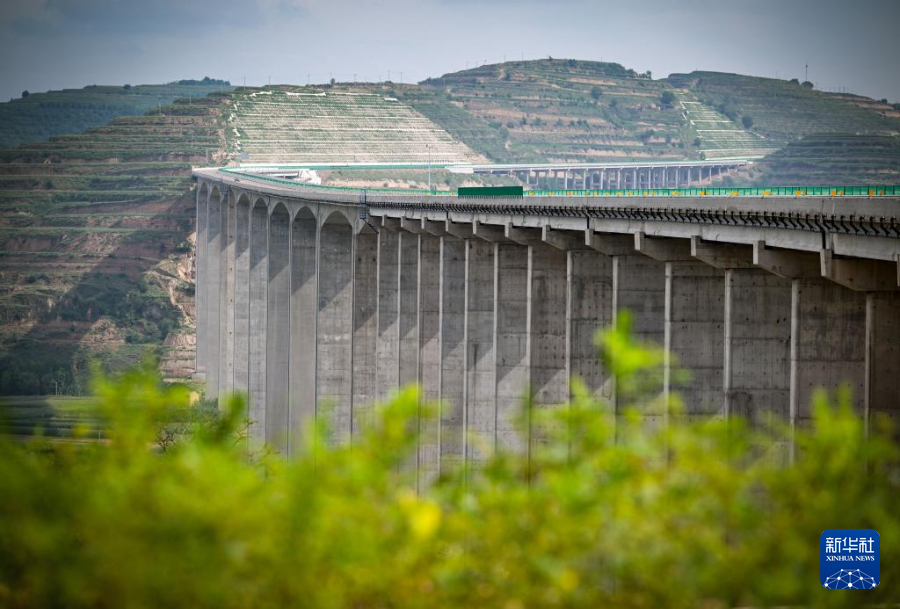 8月16日,车辆行驶在银昆高速杜家沟大桥上(无人机照片)。