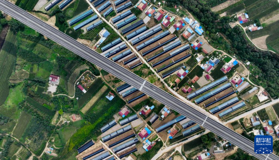 8月16日,车辆行驶在银昆高速太阳山南互通立交附近(无人机照片)。