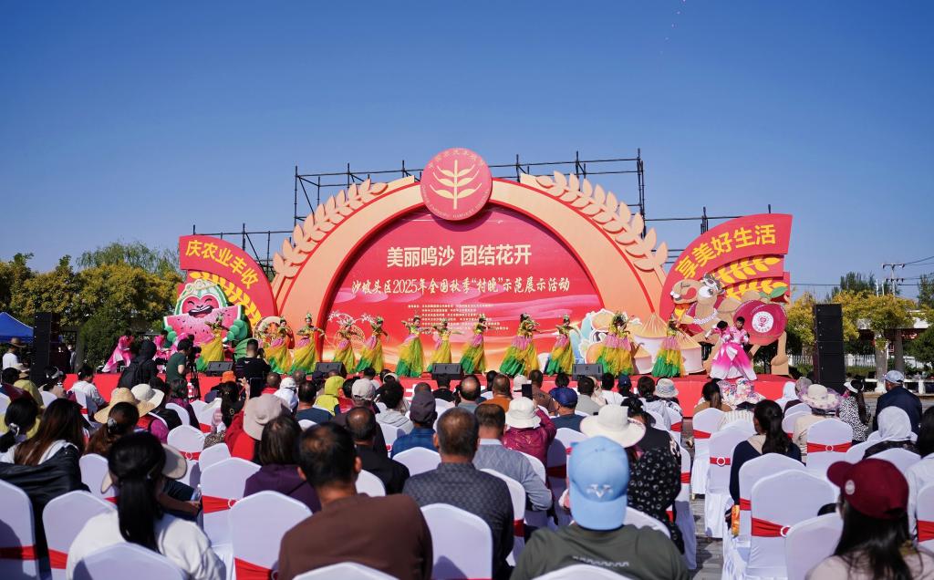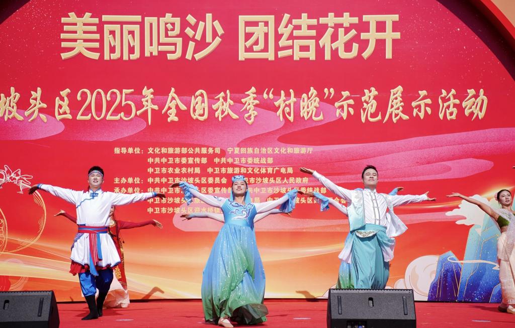 9月23日,“美丽鸣沙 团结花开”沙坡头区2025年全国秋季“村晚”示范展示活动在宁夏中卫市沙坡头区迎水桥镇鸣沙村广场举行。此次活动以铸牢中华民族共同体意识为主线,融合“村晚+丰收节+民族团结”多元主题,通过歌舞、小品、快板等多元艺术形式,精彩呈现了沙坡头区民族团结、产业兴旺、生态优美、文化繁荣的生动画面。