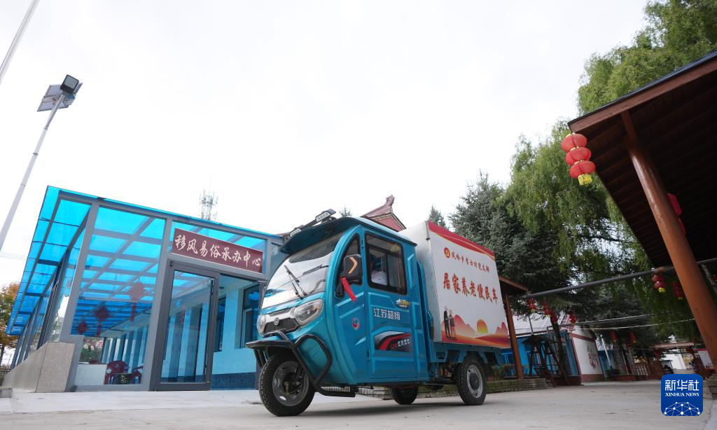 隆德县凤岭乡李士村村民驾驶居家养老便民车为行动不便老人送餐(10月26日摄)。