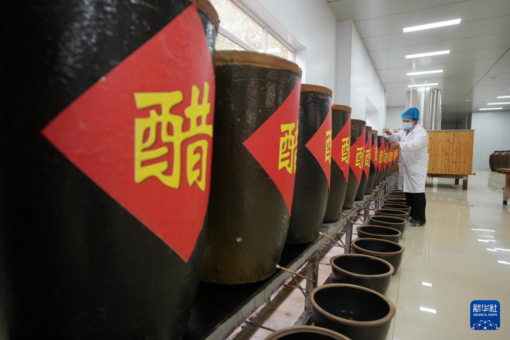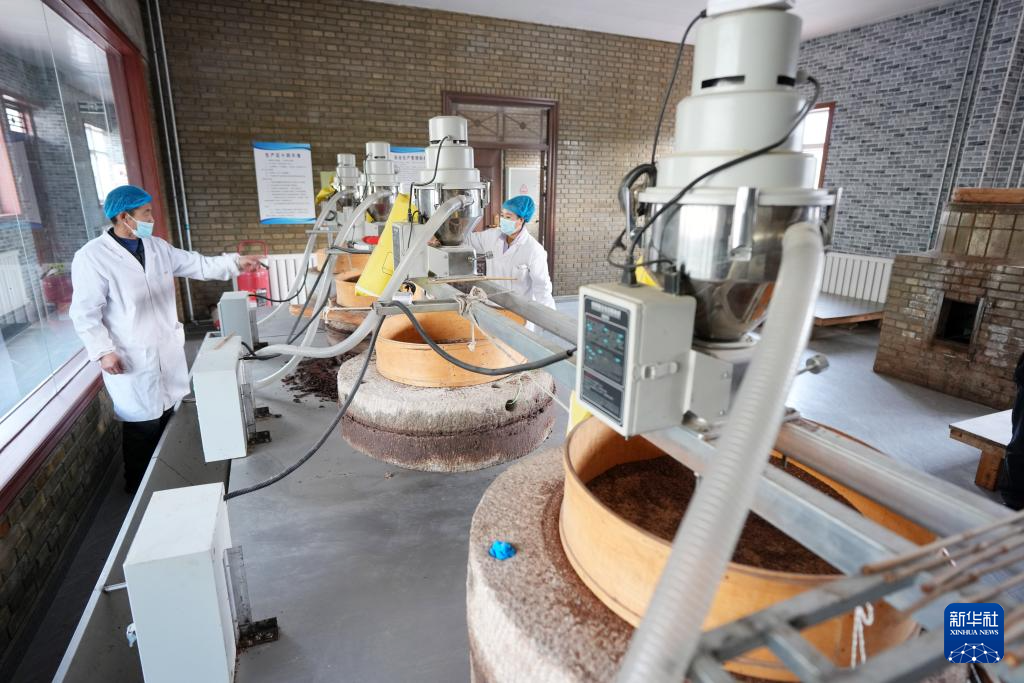 隆德县凤岭乡李士村村民在非遗工坊用传统工艺酿造食醋(10月26日摄)。