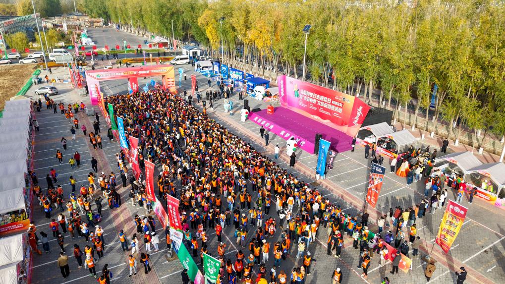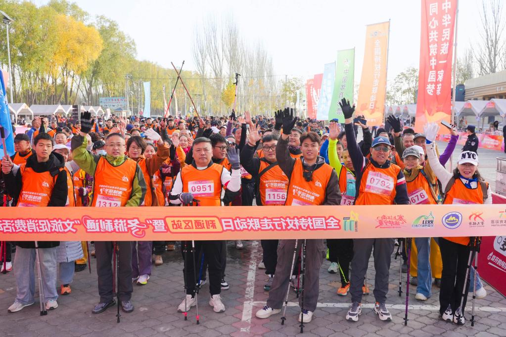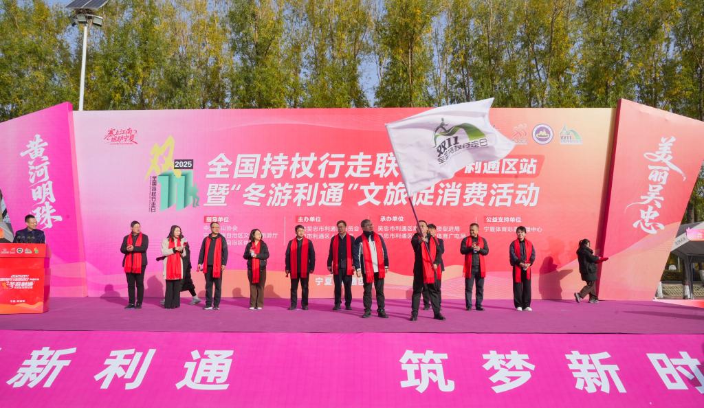 新华网银川11月8日电(记者王鹏)当日,2025年“双11”全国持杖行走联动日(利通区站)暨“冬游利通”文旅促消费活动在宁夏吴忠市利通区牛家坊民俗文化旅游区开幕。本次活动以“全民健身赋能健康中国,文旅融合激活冬季消费”为主题,吸引了1500余名徒步爱好者参与。