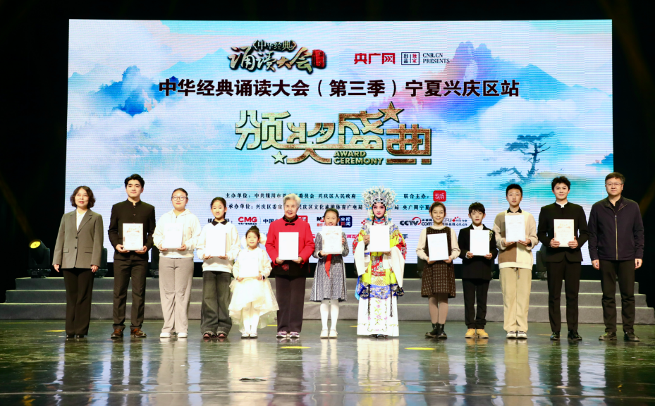 以千年文脉铸就时代风骨,用中华经典激荡盛世回响。12月6日,“中华经典诵读大会”(第三季)宁夏兴庆站展演在宁夏人民会堂举办。荣获本次活动的萌新组、小学组、中学组、大学组、社会组、乐龄组的一、二、三等奖获奖选手,宁夏地区朗诵爱好者、兴庆区中小学生等1000余人,在声韵的交响中感受中华经典的激荡。