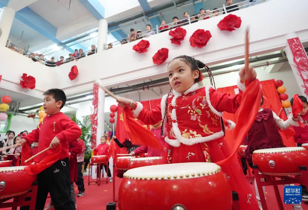 12月27日,孩子们在表演《鼓舞迎新年》。