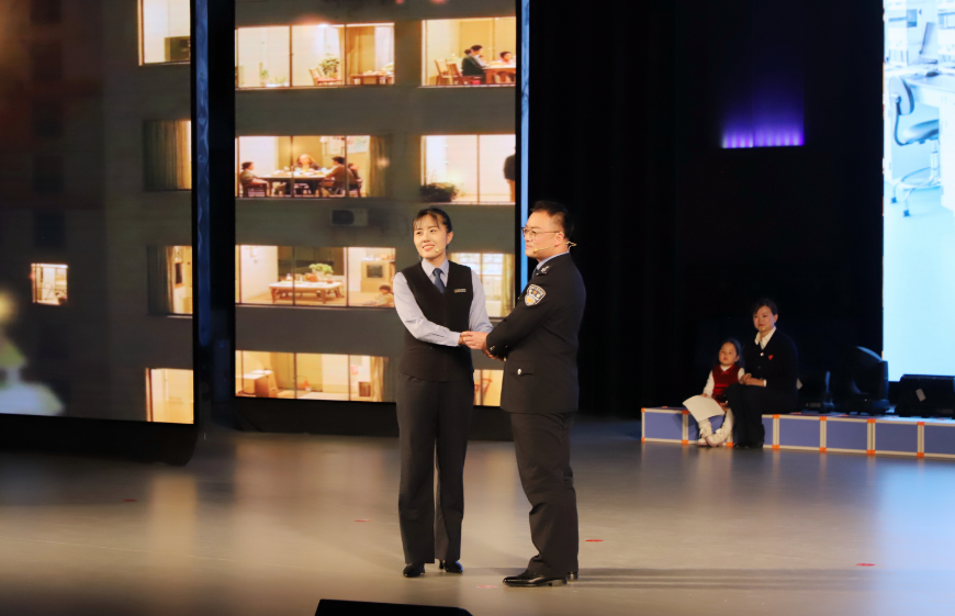 活动上篇“擎旗铸魂 法治护航”紧扣2025年公安工作成效进行演绎,说唱《警营新声・说平安》以新潮形式展现公安工作新亮点;反诈小品《跑分》通过生动演绎揭露电信网络诈骗的隐蔽手段,呼应了宁夏公安2025年电诈案件发案、财损 “双降”,为群众拦截2000余万元损失的亮眼战绩。法律知识问答环节,以新修订的《治安管理处罚法》为核心,围绕群众关心的热点问题展开互动问答,既普及了法律知识,又增强了民警与群众的法治意识。