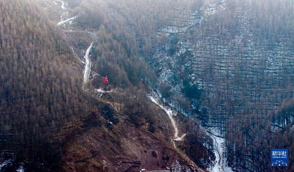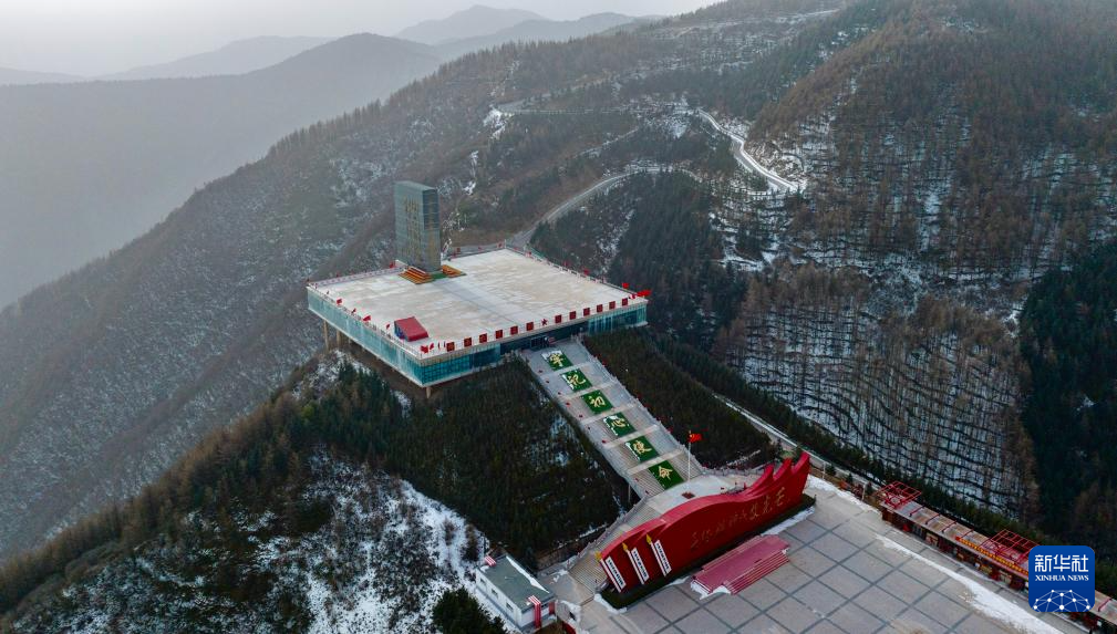 这是1月25日在宁夏固原市隆德县境内拍摄的六盘山红军长征旅游区一景(无人机照片)。