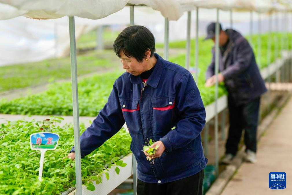 1月26日,工作人员在宁夏固原市隆德县六盘山药用植物科普教育基地内育苗。