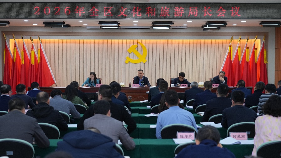 会议部署了2026年工作要从十个方面重点发力。一要聚焦政治建设,强化思想引领,构筑共有精神家园,严守意识形态阵地,推进全面从严治党。二要聚焦科学规划,高质量编制“十五五”规划,力求务实管用,强化协同联动与闭环管理。三要聚焦文艺繁荣,提升原创能力,推动文艺服务驻乡进村,加强文艺人才队伍建设,打造精品力作。四要聚焦公共服务,创新惠民载体,建好用好“家门口”文化空间,开展“接地气”文化活动,补齐服务短板,激发群众参与活力。五要聚焦文脉赓续,加强文化遗产系统性保护,深化内涵研究与阐释,探索非遗活化路径,提升文博场馆服务水平。六要聚焦产业发展,推动产品供给提质升级,激发消费活力,狠抓项目牵引,培育壮大市场主体。七要聚焦区域联动,构建“区内成网、区域成环、国际成线”的旅游线路体系,深化跨省协作,拓展国际市场。八要聚焦品牌提升,创新推广方式,实施精准营销,提升“塞上江南·神奇宁夏”品牌国际国内影响力,抓住闽宁协作30周年机遇讲好宁夏故事。九要聚焦环境优化,持续规范市场秩序,改善服务体验,强化综合保障,提升行业治理能力。十要聚焦本质安全,压实责任链条,深入排查隐患,强化应急演练,加强安全宣传,坚决守牢文旅发展安全底线。