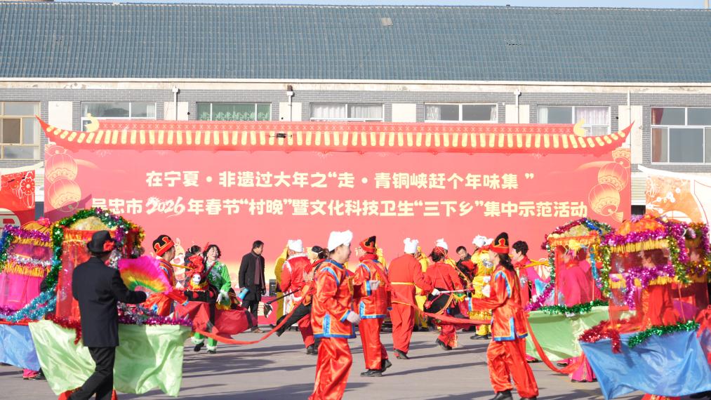 新华网银川2月5日电(记者艾福梅)4日,立春时节,在宁夏·非遗过大年之“走·青铜峡赶个年味集”吴忠市2026年春节“村晚”暨文化科技卫生“三下乡”集中示范活动,在青铜峡市叶盛镇叶盛大集启动。活动以“赶个年味集”为纽带,融合非遗展示、民俗展演、惠民服务、年货嗨购,为现场上万余名群众送上了一场浸润乡土气息、洋溢乡村振兴活力的新春盛典。
