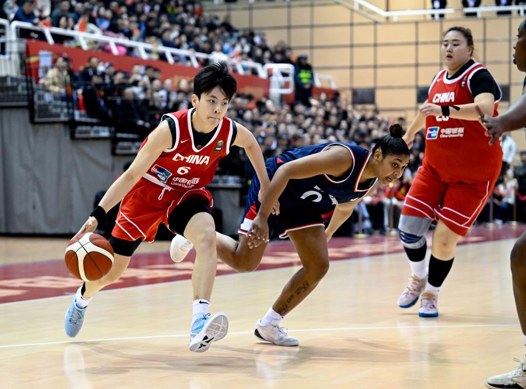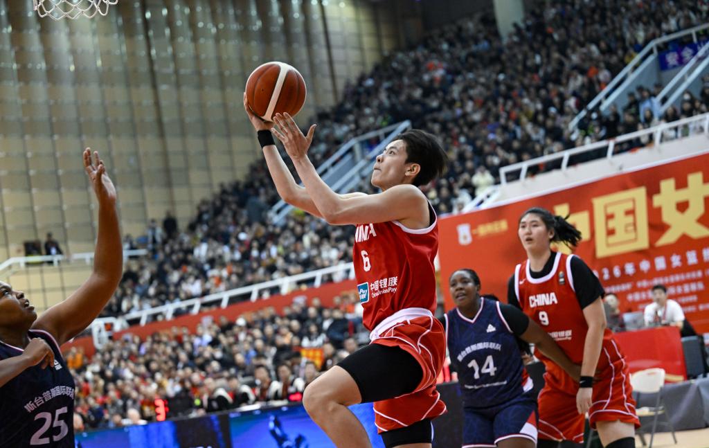 2月11日,在宁夏银川举行的2026年中国女篮热身赛中,中国队119比74战胜国际女篮联队。新华社记者 冯开华 摄