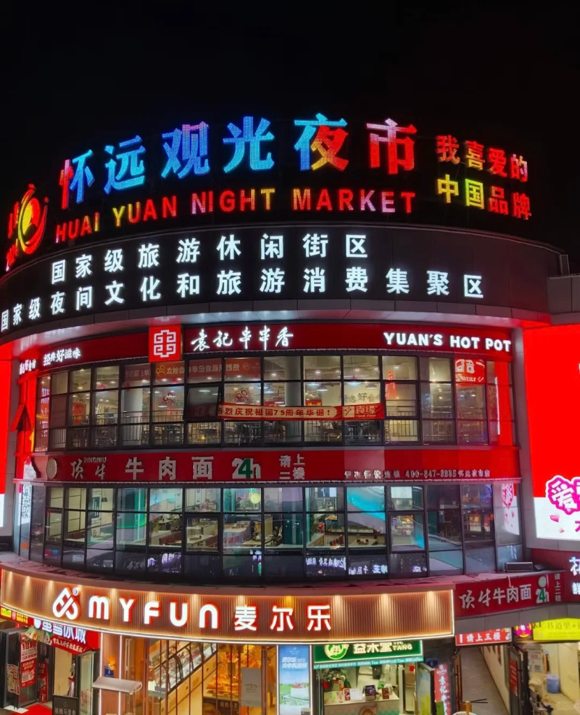 华灯初上,银川市人气最旺的怀远夜市开张迎客。(银川市委宣传部供图)