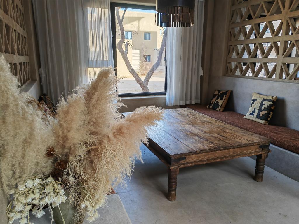 坐落在腾格里沙漠边缘的沙漠度假酒店内部休息区。新华社记者任玮 摄