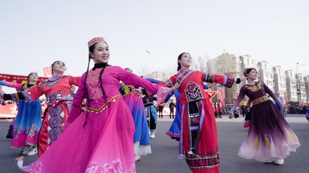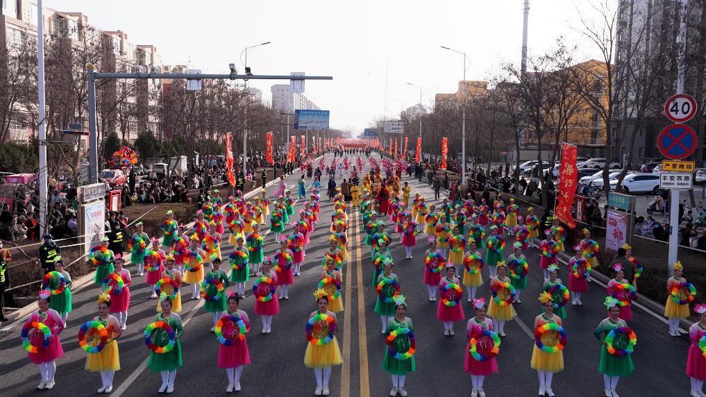 上午10时,活动在大型特色广场舞表演《中卫三姐妹》中拉开帷幕。随后,各具特色的社火队伍依次亮相,争奇斗艳。自治区级非物质文化遗产代表性项目海原春官词精彩登场,老艺人携稚嫩传人同台献艺,即兴编唱吉祥诗文,将中卫的乡土风物、民俗风情融入喧腾社火之中,唱腔婉转、韵味悠长。创意节目《斗戏·梨园圈》打破传统舞台界限,武生、青衣、丑角等戏曲能手从人群中“惊艳现身”,围圈斗戏、各展绝技,秦腔经典选段信手拈来、字正腔圆。