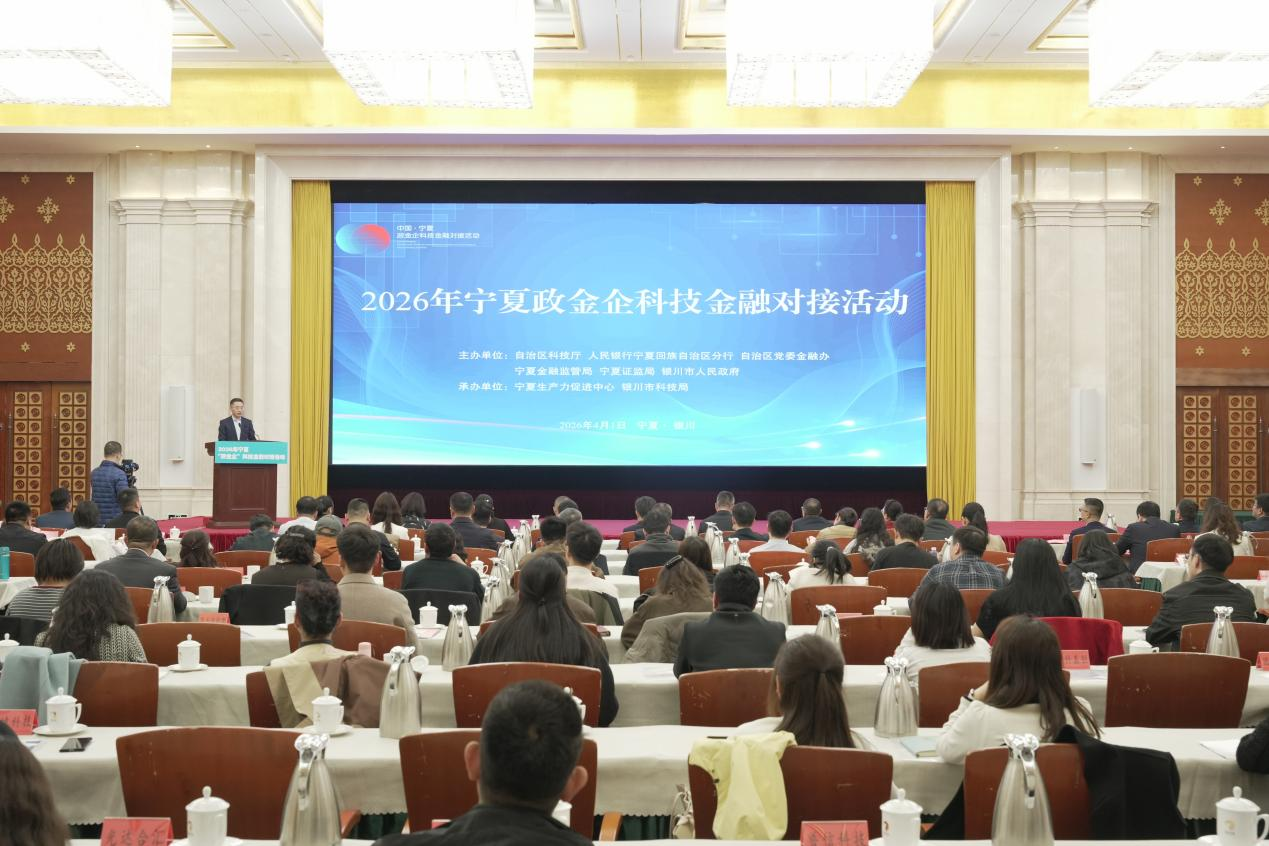 4月1日,由宁夏回族自治区科技厅、人民银行宁夏区分行、自治区党委金融办、宁夏金融监管局、宁夏证监局、银川市人民政府联合主办的2026年宁夏“政金企”科技金融对接活动在银川举办。